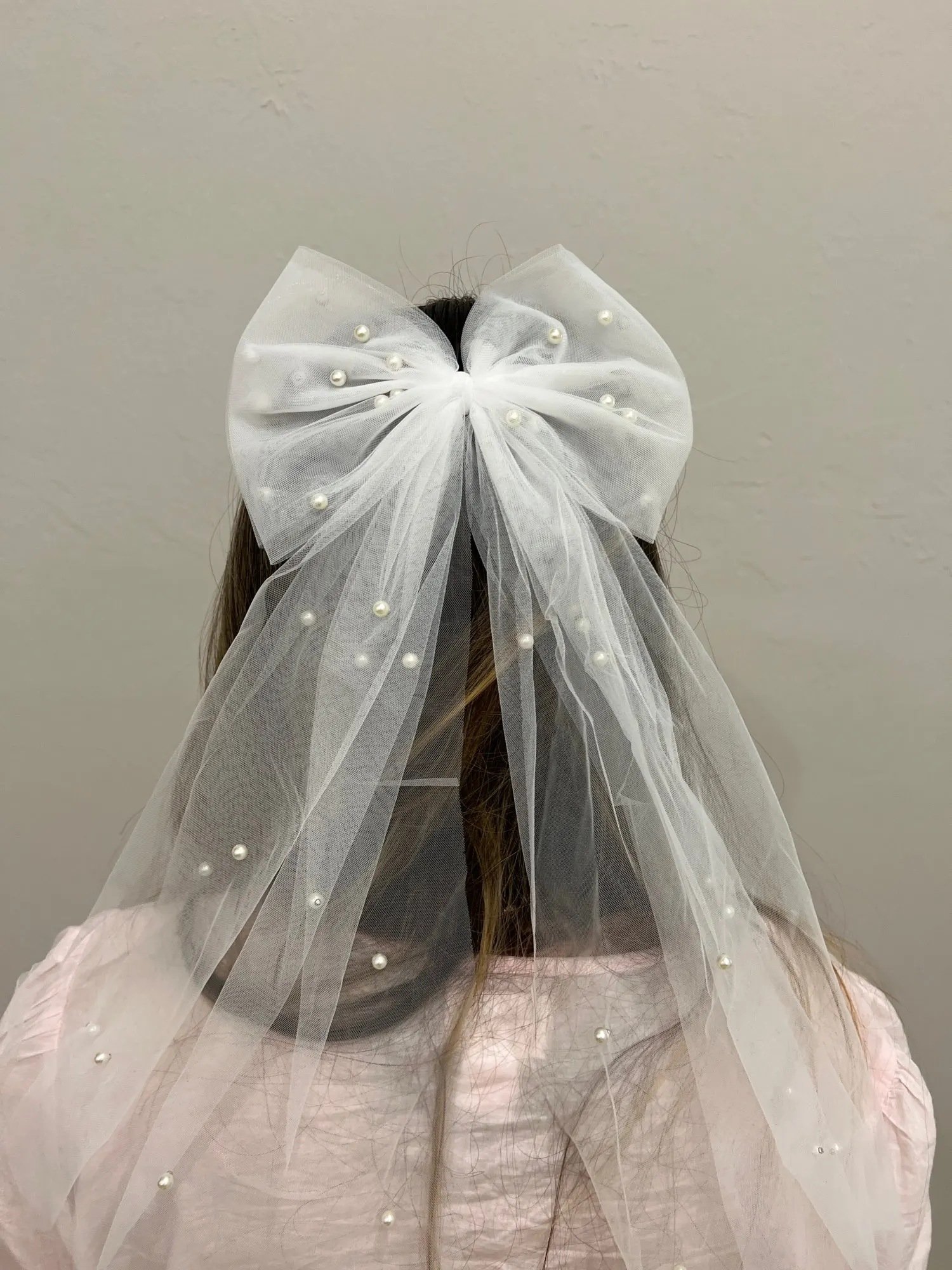 White Bow Veil Hair Clip – Bride Hair Accessory – The Hen Planner